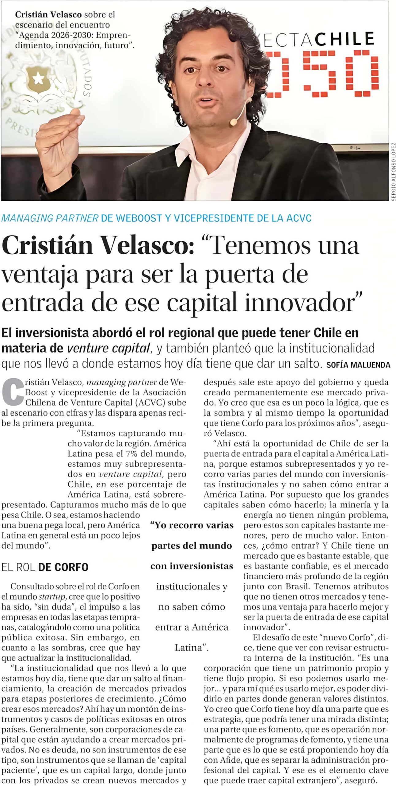El Mercurio, Economía y Negocios – Tenemos una ventaja para ser la puerta de entrada de ese capital innovador